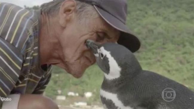 داستان مهر و دوستی یک پنگوئن نجات یافنه از آلودگی به قیر، با نجات دهنده خود